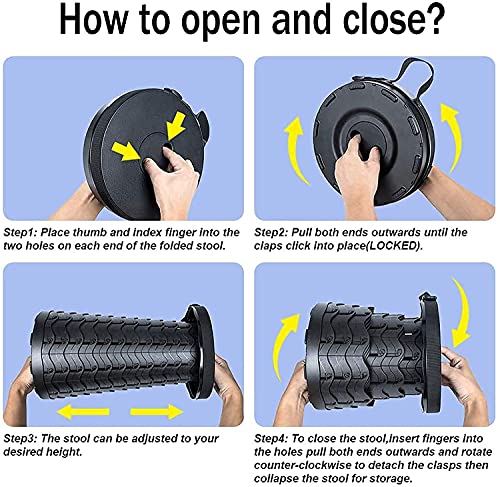 This portable collapsible stool is adjustable, you can adjust it to the comfortable height for you within the range of 2.5 to 17.7 inch so that telescopic stool is suitable for most kids and adults.
