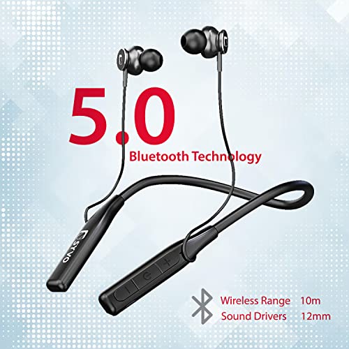 SYVO Flex Bluetooth 5.2 Wireless in Ear Headphones, 13mm Driver, Deep Bass, HD Calls, Fast Charging Neckband, Dual Pairing, Voice Assistant & IPX4 Water Resistant (Black)