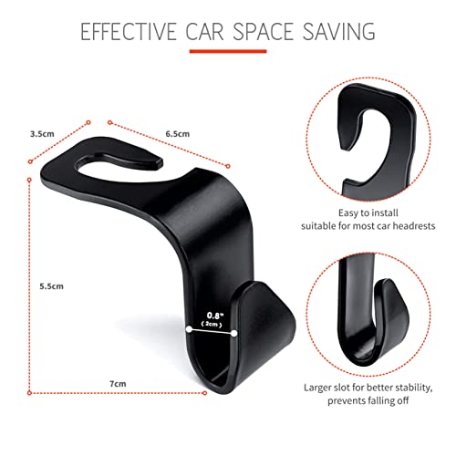 Car Organizer – Smooth and sturdy car seat hook: This bag includes 4 sturdy multi-purpose car seat headrest hooks. Made of durable, yet flexible PP material that won’t break or chip, the hanger is strong enough to hold 30 pounds per hook, while its sleek design will enhance the interior of your car and help it look neat and tidy every day!