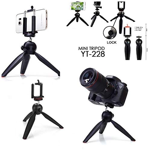 TechKing (SPECIAL DEAL WITH 15 YEARS WARRANTY) YT-228 Mini Tripod Table Top Stand and Phone Mount, Compact, Travel Ready, Compatible with Smartphones, Compact Cameras, DSLRs, and can be Used as Selfie Sticks