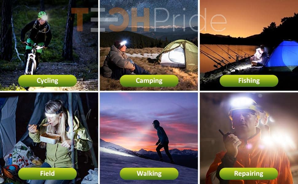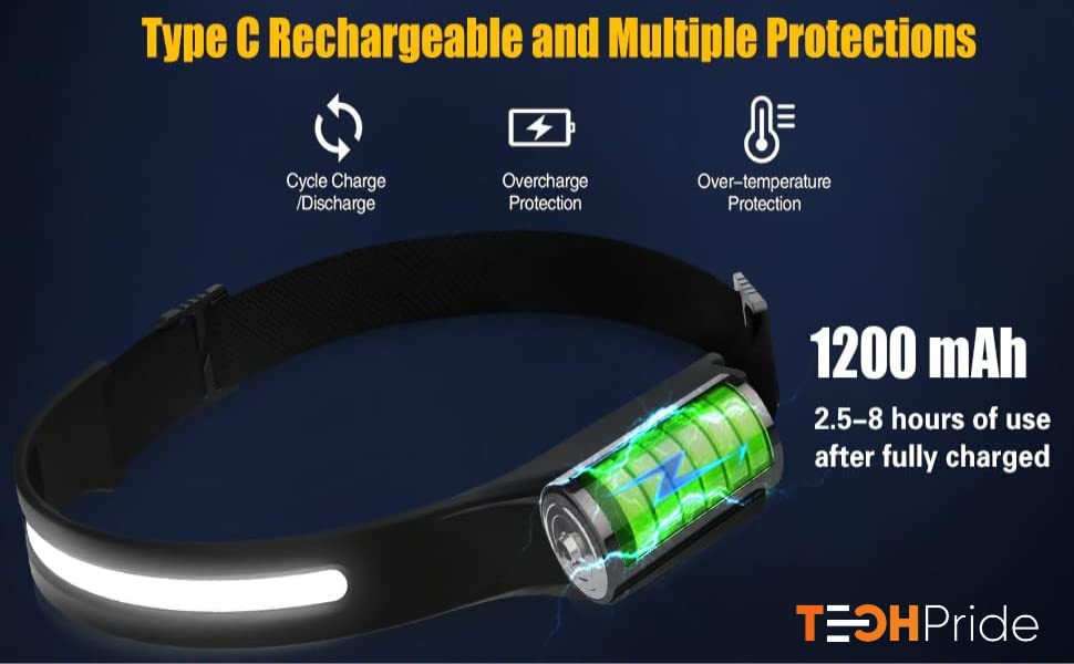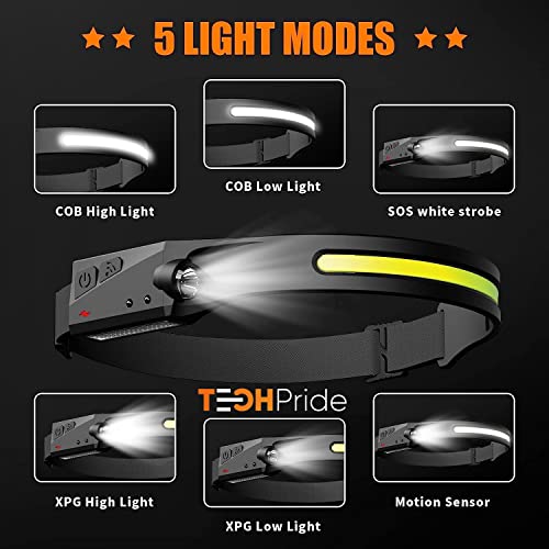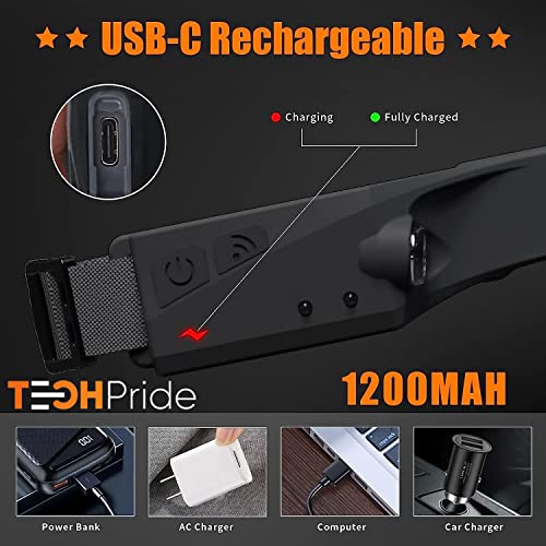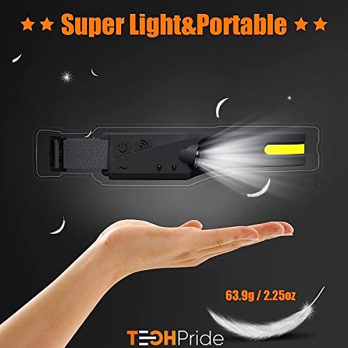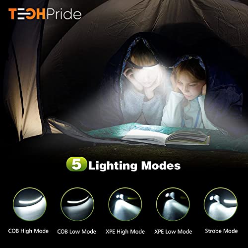 TechPride Headlamp Rechargeable, Wide Beam Head Lamp LED Flashlight, Camping Accessories Gear, Waterproof Head Light Flashlight for Hiking, Running, Repairing, Fishing, Cycling, Reading. (HL-1)