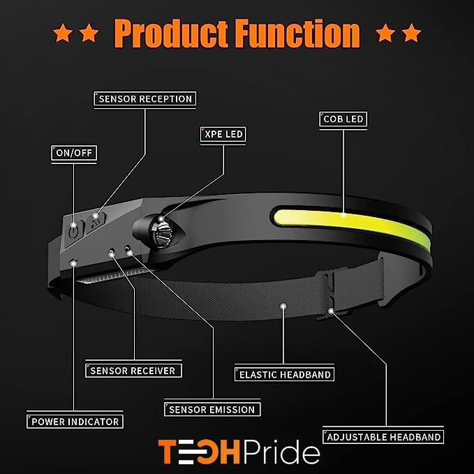 Be the first to review “TechPride Headlamp Rechargeable, Wide Beam Head Lamp LED Flashlight, Camping Accessories Gear, Waterproof Head Light Flashlight for Hiking, Running, Repairing, Fishing, Cycling, Reading. (HL-1)”