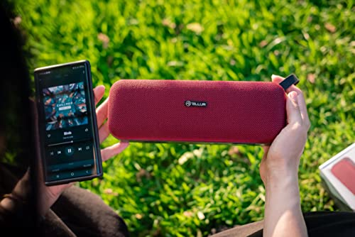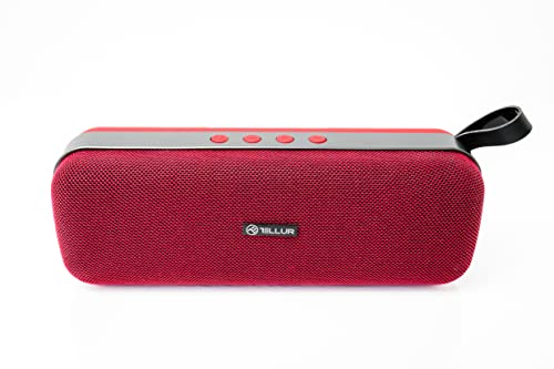 TELLUR Loop Portable Bluetooth Stereo Speaker, 10W, True Wireless Stereo Technology Enabled, FM Portable Radio Speaker, Hands-Free Function, USB, MicroSD/TF Slot, AUX Jack 3.5 mm, BT 5.0 (Red)