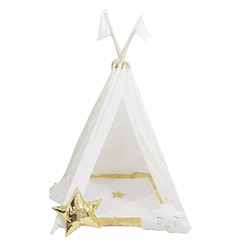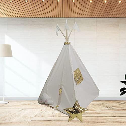 Tent House for Kids Portable Play Tent for Kids, A House for Boys & Girls to Play Indoor or Outdoor Games and Party Decorations (White and Golden)