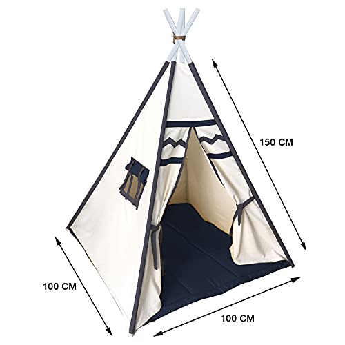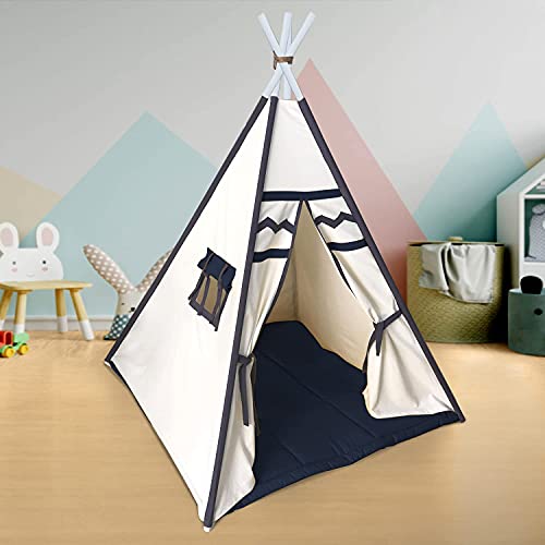 Tent house for kids Teepee Play Tent for Kids Portable Foldable Flag House for Children Play Tents with Mat for Girl and Boy with Carry Case Canvas Playhouse Indoor and Outdoor with Baby Pillow Black-White