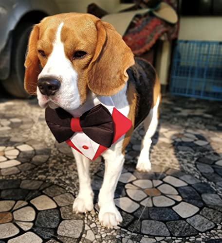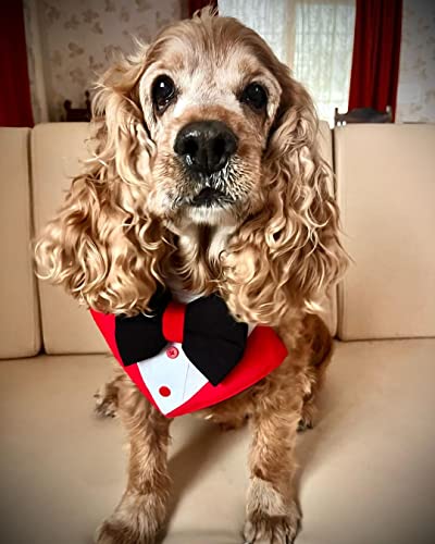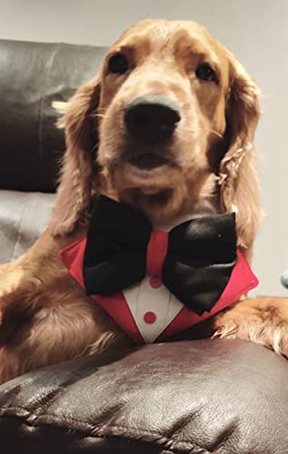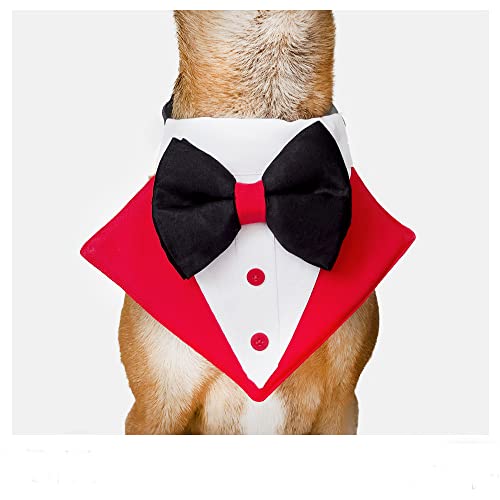 That Dog In Tuxedo Dog Tuxedo Bandana/Pet Tuxedo Bow Tie for Dogs with Adjustable/Removable Collar (M-L, Red)