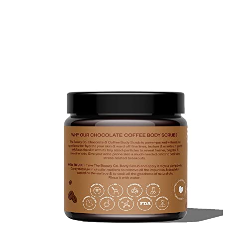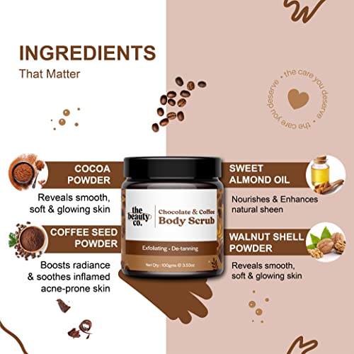 The Beauty Co Chocolate & Coffee Body Scrub |Men and Women| Exfloiting and Detanning |Removes Dead Skin from Back Neck & Arms |Bathing Scrub with Walnut Powder for Soft & Glwoing Skin -100 gm