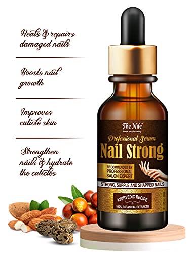 The Nile 100% Natural Profesional Serum Nail Strong For Strong. Innovative nourishing formula with enhancing powers of oils for nail growth, repair and cuticle care. A unique treatment formula which consists of a blend of various essential oils and moisturizing agents that nourish the nails and cuticle area. It mainly strengthens thin, weak nails and also treats damaged cuticles at the root. It also prevents cracking and peeling of cuticles, making them smooth and nourished.