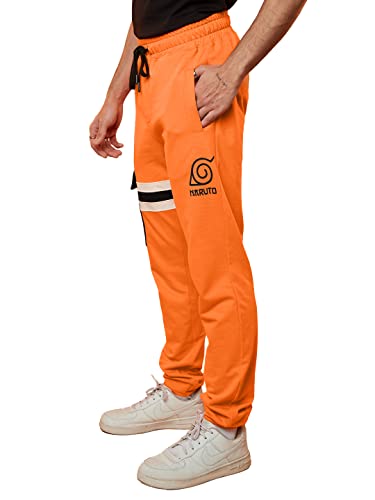 The Souled Store| Official Naruto: Uzumaki Mens and Boys Joggers|Regular fit Graphic Printed| 80% Cotton 20% Polyester Orange Color Men Cargo Joggers