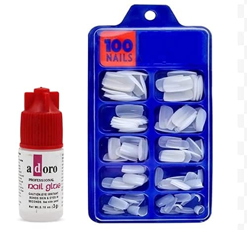 Tifurko Nail Art Combo of Artificial Nails, 100 Pieces of Nails, Nail Cleaner Brush, Nail Filer and Buffer Both and Nail Glue for Girls, Easy to Use and Remove and Change Styles Frequently and Easily.
