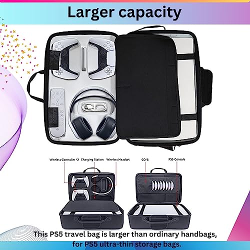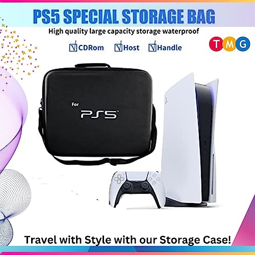 TMG® Storage Bag for PS5, Carrying Case Portable Waterproof Shockproof Nylon Fabric Bag Fits for PS5 Travel Bag, Hard Shell Larger Capacity Case Black
