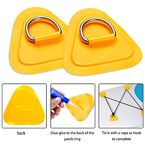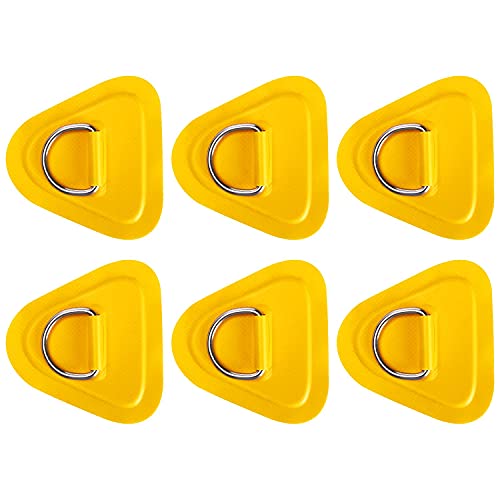 TOBWOLF 6 Pack 3.54″ / 9cm Stainless Steel D-Ring Patch for Inflatable Boat Kayak Dinghy SUP, Triangular D-Ring PVC Patch Stand-Up Paddleboard Canoe Rafting Accessories, NO Glue Included – Yellow