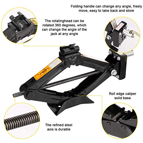 Park on a horizontal surface. Never use blocks on or under jack Never jack up more than necessary Use wheel chocks or blocks to fix other wheels Compact Jack Easily Positioned Under Any Vehicle Folding Handle For Easy Turning Of Lead Screw Load capacity: 1 TON Make choice base on your requirement Compact And Light Weight For Ease Of Storage In Car Trunk Compartment Portable And Easy The lightweight floor jack can be easily carried from one location to another, and its 360-degree swivel casters allow for smoothly maneuvering it into place. Usage Method: First, park the car on a flat hard road and turn off the engine. Second, fix the other three tires with tire pads or bricks. Third, turn the screw shaft of the jack by hand to control the jack to rise until the top of the jack is against the underbody. Fourth, when the car operates the jack, there is no need to install the steel column of the jack. Fifth, put on the jack ratchet wrench and shake it back and forth to control the jack to rise, and stop the operation after the tire is off the ground. Sixth, switch the ratchet wrench button and operate the control jack back and forth to lower.