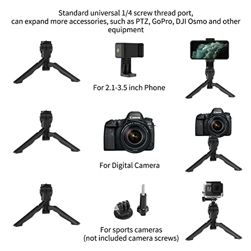 Mini table top tripod, lightweight and portable, convenient to carry around. Folding design can be used as a handheld stabilizer for recording video. With 1/4″ screw for mounting digital camera or smartphone holder. Adjustable tripod head provides you with more flexible shooting angle. (Pushing the buttons to adjust) Including a phone clip with 6-9.5cm adjustable width and supports horizontal and vertical usage. Rubber pads and soft foam cover the contact parts of phone and phone holder, no scratch to your smartphone. Fits most of smartphone, suitable for Phone Colour: Black Material: Plastic Compatible Phone Width: 6-9.5cm / 2.4-3.7″ Tripod Weight: 85g / 3oz Phone Clip Weight: 36g / 1.3oz The smartphone showed in the picture is not included. Package List: 1 * Tripod Stand 1 * Phone Clip.