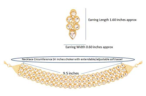 SPECIFICATIONS : 9.5 inches choker with flexible and soft tassel. Earring weight (single) 6 gms. Earrings length 1.60 inches. Earrings width 0.60 inch.