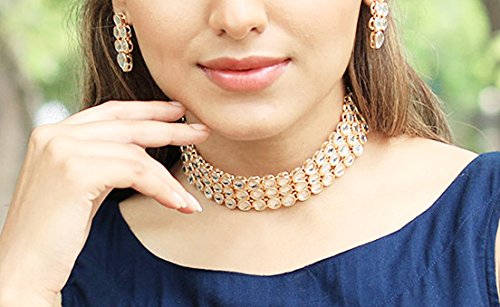 Touchstone “Contemporary Kundan Collection Indian Bollywood traditional Mughal Kundan polki bridal designer jewelry choker necklace set for women