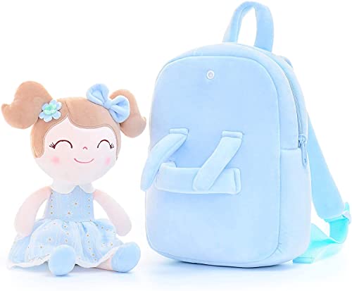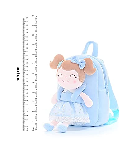 Toyshine Kids Backpack for Girls backpacks Plush bag with Soft doll for Toddler baby 9 Inches, Blue