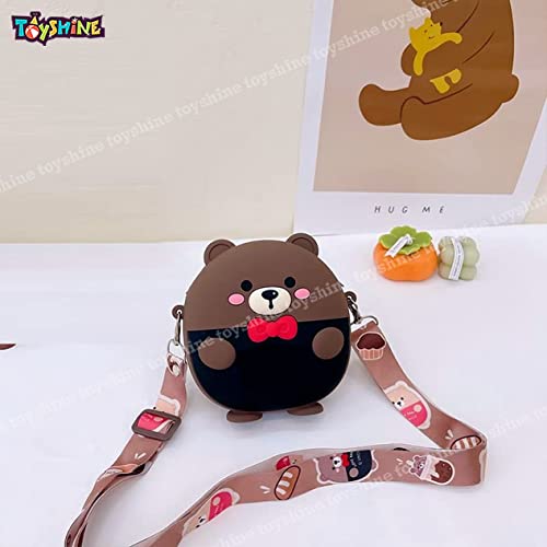 Toyshine Soft Touch Girls Mini Hanging Cute Children Side Bags with Strap, Comb and Compact Mirror for 4~8 Years Baby Gitl Boy Birthday Gift Present – Bear Brown