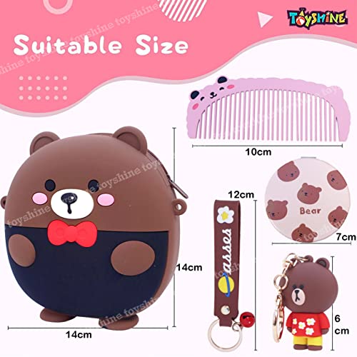 KEEP VARIOUS STUFF – Keep lots of stuff in this cute bag as your perfect outdoor partner. No of items comes with this purse – Silicone adorable bag, Strap, mirror, Comb and cute key chain accessory. This cute bear purse is perfect for girls and women, suitable for storing phone, key, coins, napkins and other daily smallobjects