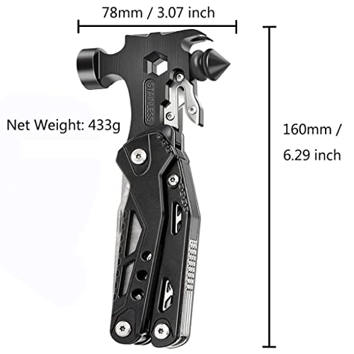 TRAVELER 16-in-1 Hammer Multi-Tool Multi-Functional Pocket Hand Tool for Camping, Hiking, Adventure Gear (Multitool)