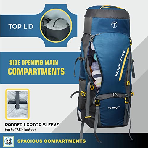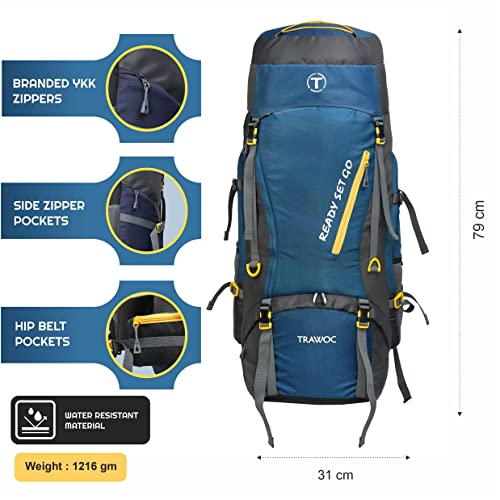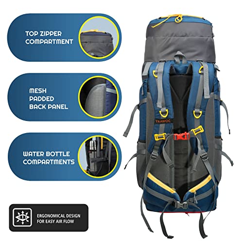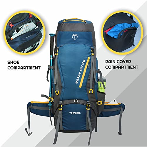 TRAWOC 70L Travel Backpack for Hiking Trekking Bag Camping Rucksack with Rain Cover/Shoe Compartment HK008, 1 Year Warranty