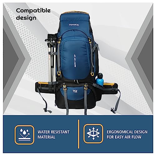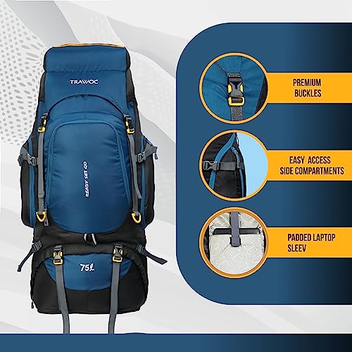 TRAWOC 75 Ltr Travel Backpack Camping Hiking Trekking Bag Rucksack with Rain Cover/Shoe Compartment, English Blue