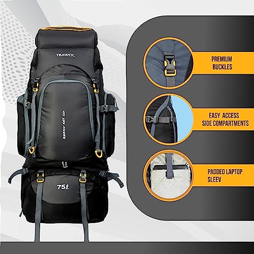 Choosing the convenient backpack for hiking isn’t easy because the market is flooded with so many different designs and models. However, we believe that everyone can make the right choice once they have enough information about the types of backpacks, there features, and use. It’s essential to have a reliable hiking backpack when on the trail. Depending on the duration of your hike and your preferences, you may choose to use a hiking day pack or a large multi-day hiking backpack. TRAWOC presents 75 liter rucksack bag for hiking, trekking and travelling. This bag pack has water-proof resistant material, padded mesh back panel, ergonomic design and various compartments