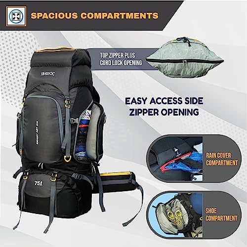 TRAWOC 75 Ltr Travel Backpack Camping Hiking Trekking Bag Rucksack with Rain Cover/Shoe Compartment, Grey