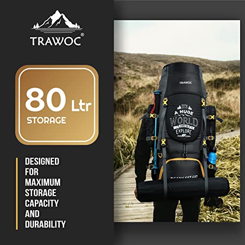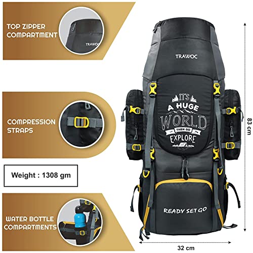 TRAWOC 80 L Camping Hiking Trekking Bag Travel Rucksack with Rain Cover/Shoe Compartment BHK004 1 Year Warranty (Grey-Black)