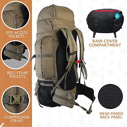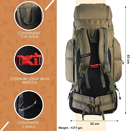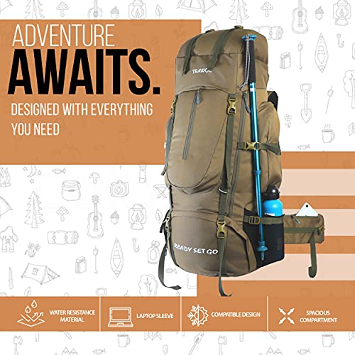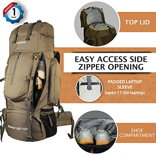 TRAWOC 80L Travel Backpack Camping Hiking Rucksack Trekking Bag with Water Proof Rain Cover/Shoe Compartment, BHK001 (Olive Green)