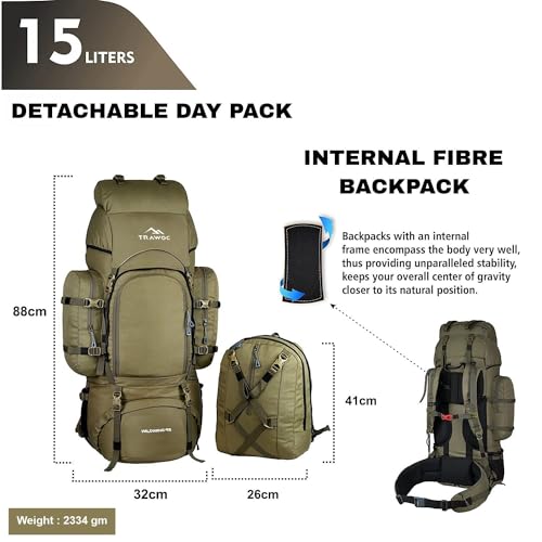 TRAWOC Internal Frame Travel Backpack with Detachable Daypack/Camping Hiking Trekking Bag Rucksack BHK007, 1 Year Warranty