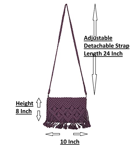 Macrame bag is made of 100% natural Cotton Ropes. Selected cotton rope material with handwoven crochet craft, soft, delicate and lightweight. Detachable Strap ,So perfect as Sling Bag and Clutch design, makes you look unique and fashion. The tote bag has enough room for your stuff for travel and daily necessities such as wallet, glasses, cell phone, cosmetics, cards, iPad and other necessary things. Perfect for any occasions such as beach, pool, spa, party, shopping, hiking, camping, dating or just as every day bag. Suit for all seasons, especially summer, never out of style. Bag Size : 10*8 Inch , Detachable Strap Length 24 Inch. Bag Strap is detachable so it can be adjust by moving hook up and down.