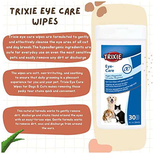 Trixie: – Eye Care Wipes | Eye Care Wipes for Dogs, Cats and Other Small Animals | Works to Gently Remove Dirt, Discharge and Stains Around The Eyes with an Easy-to-Use Wipe – 30 Count