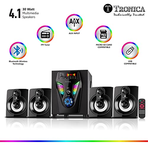 TRONICA FD-101 30W Home Theater/ 4.1 Channel Bluetooth Home Theater Music System with Remote/FM/USB/AUX/LED/TV Support