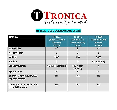 TRONICA TR-1501 Auxiliary, Bluetooth Deep Bass Home Theater with Subwoofer 2.1 Channel with 55W Premium Signature Sound, Multiple Connectivity Modes, Master Remote and Sleek Finish (Black)
