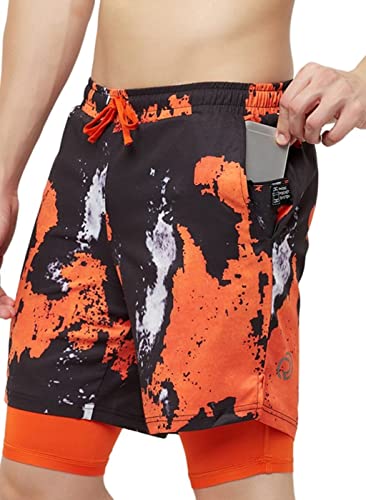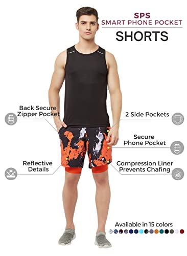 TRUEREVO 2 in 1 Running Sports Shorts for Men with Mobile Phone Pocket Light Weight Quick Dry Fabric for Gym Athletic