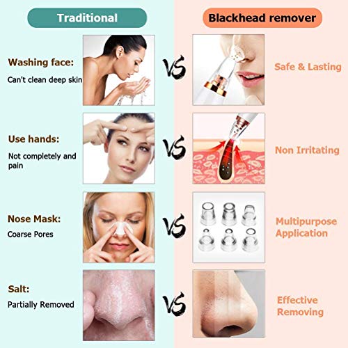 Skin Beautification 6-in-1 Blemish Extractor Kit: Comes with LED Display with 6 suction heads to solve different skin problems. Acne Treatment, Black Head Removal, Pore Cleaner with 3 Adjustable Strength Level: You can easily adjust the most appropriate suction levels for your different skin. USB Rechargeable & Portable: No more worry about replacing batteries, built-in high-capacity 380mApolymer batteries can last over 90 minutes on a single charge. Deep Cleaning Adopt high technology and vacuum extraction to help you reduce blackheads, acne, dead skin, dirt, and oil. Warm Tips: Please don’t stay in one place more than 3 seconds, just slide up and down to preuent from purple and red skin. Cycle: 1-2times per week.