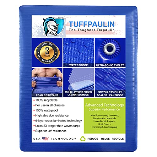 TUFFPAULIN 30FT X 20FT 120 GSM Blue Tarpaulin Tirpal Tadpatri Tharpai Thadika, Extra Strong, Reinforced Eyelets, UV Resistant, 100% Waterproof Virgin, 6 Layer MLCL 3D Rib Technology-1 No.