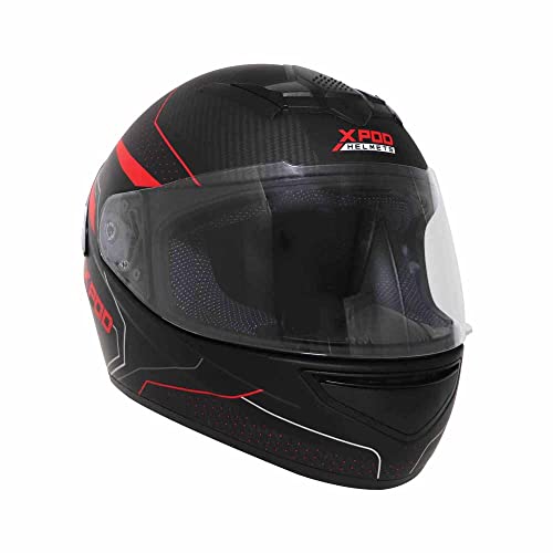 TVS XPOD Aerodynamic Helmet for Men-ISI Certified, Ultrawide Visor, Quick Release Strap-Premium Bike Helmet with Enhanced Air Circulation (Blistering Black & Red-M)
