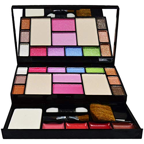 24 Shades of Eye, 3 Shades of Blush, 2 Face Powders (1 Shimmer & 1 Non-Shimmer) and Sponge Applicator, 4 Lip Colors