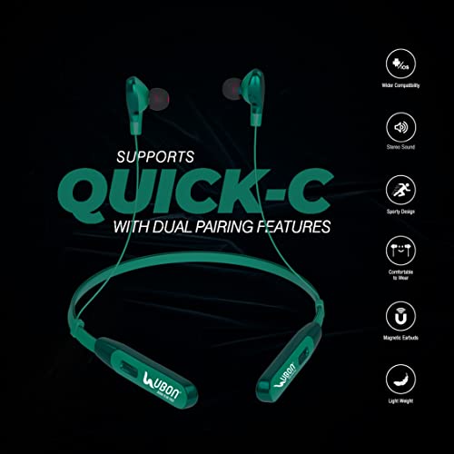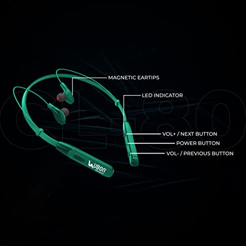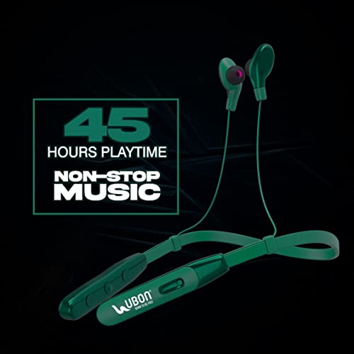UBON CL-80 Bluetooth Headphones Earphones 5.0 Wireless Headphones with Fast Charging, 45Hrs Playtime, Dual Pairing, Lightweight Neckband, Sweat-Resistant Magnetic Earbuds with Inbuilt Mic (Green)