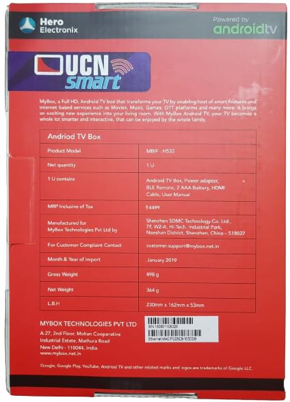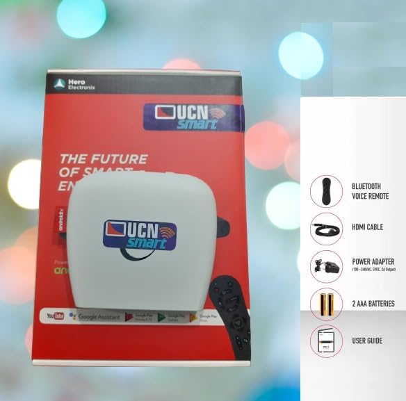 * Plug & Play * Easy to connect * Play FULL HD resolution * wify inbuilt * Google PLAY STORE Availble * Google Voice Assistant Supported * UCN Smart Box Convert your Normal TV into a Smart TV (Android)
