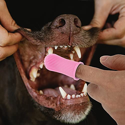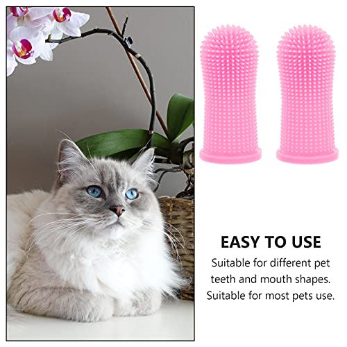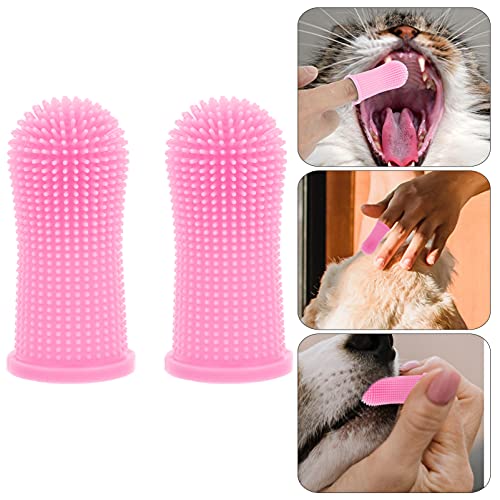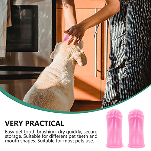 ULTECHNOVO 2PCS Dog Toothbrush Fingerbrush Silicone Dog Teeth Cleaner Cleaning Cat Pet Toothbrush Toothpaste Dental Care for Puppies Oral Care Pink