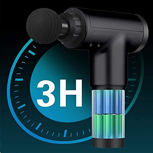 This massage gun has 6 speed strength levels, which allow you to get the right and appropriate amount of pressure to relieve your muscle pain RECHARGEABLE BATTERY – 2000 mAh rechargeable lithium-ion battery (small capacity but can be used for 60-90 minutes) CONCISE DESIGN – One button start, lightweight for one hand hold, 4 massage heads meet most requirement, ideal gift for you and your friends.