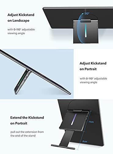 UPERFECT Y Portable Monitor Freestanding Touchscreen, 15.6”FHD 1080P IPS Screen with Adjust Kickstand, 2000:1 Contrast Ratio, 100% sRGB w/Standard HDMI/USB 3.0/Type C, Built-in Speaker/Ambient Light