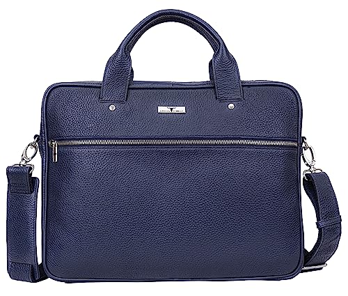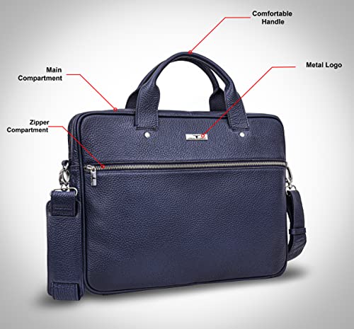 Textured Top Grain Genuine LeatherBranded Jacquard Lining for Rich Feel and DurabilityMetal Zipper and Metal Fittings For Contrasting LookDetachable Long handle with Dog-hooks for convenienceAdjustable Long Handle with Shoulder Patch to prevent Strain on ShouldersPadded Laptop Compartment to Protect your LaptopNeat Stitching making the Bag Resilient for the years to comeRiveted to provide extra strength around the handles