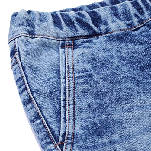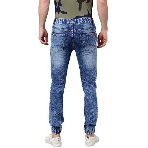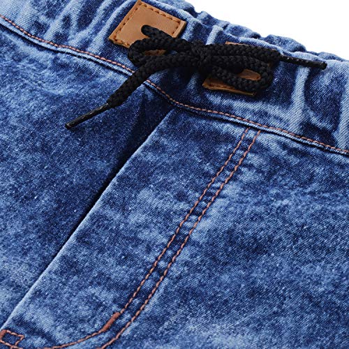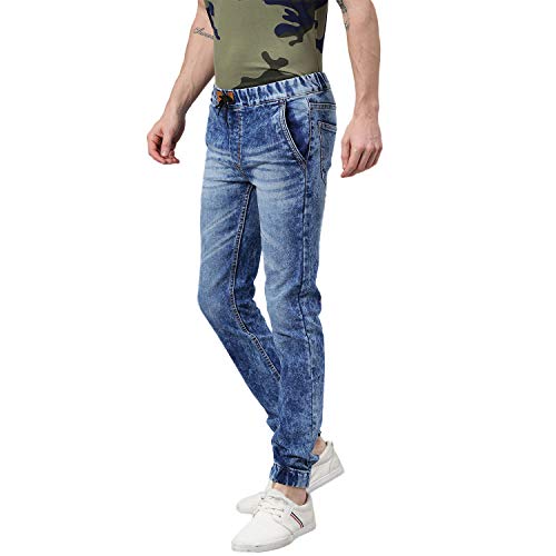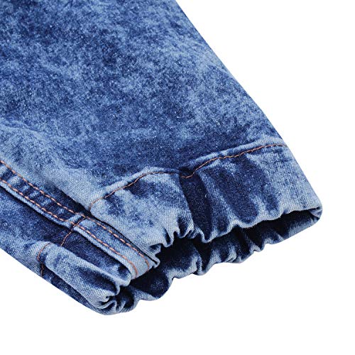 Stylish heavy washed blue jogger jeans – elasticized waistband with drawstring and elasticized ankle rib