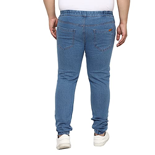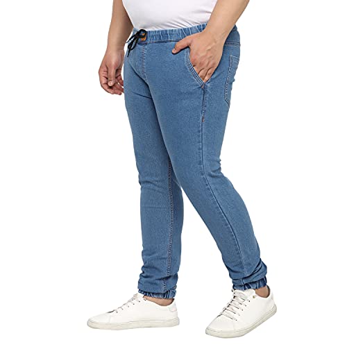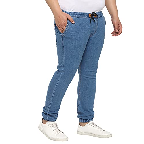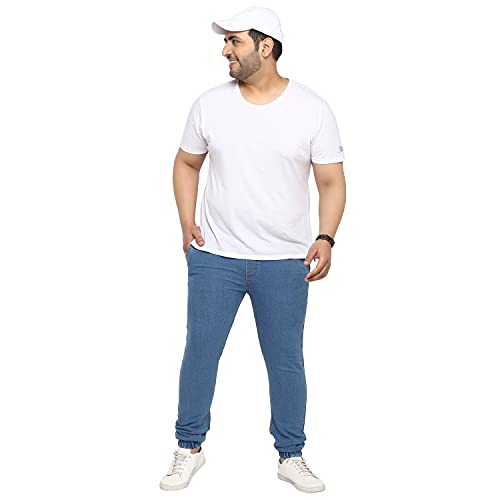 Bring out your stylish best this season in this classy and trendy men’s stretchable light blue washed jogger jeans from Urbano Plus. Made with superior quality cotton fabric with stretch technology, heavy washed pattern, the regular fit mid-rise jogger denim jeans with elasticised waistband are sure to keep you looking stylish and feeling comfortable through the day. Pair these must-have fashionable jogger jeans with any light color Urbano Plus shirt or t-shirt for the perfect casual, party, holiday or office wear look. So go ahead, stand apart from the crowd and create your own trends. And follow no one else but yourself. Urbano Plus – your go-to stylish and comfortable Plus size brand from Urbano Fashion.