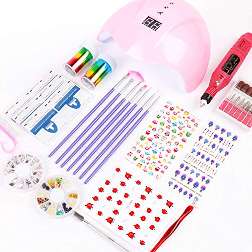 The complete set of nail tools for easy diy design. The nail lamp, nail hine, nail decor and nail tools all provide for you, easy to use. With them, you can create some beautiful nails.