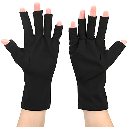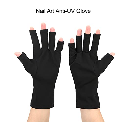 UV Protection Nail Art Gloves, UV Resistant Nail Art Skin Care Glove Polyester Hands Protection Flexible for Hiking for Canoe for Driving(black)